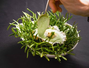 Le Chef Camille Adam imagine, cuisine et sert pour vous un repas gastronomique sur mesure, directement chez vous, entre calanques et mer Méditerranée.