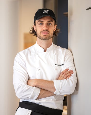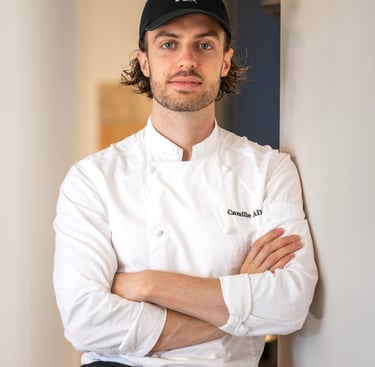 Le Chef Camille Adam orchestre votre dîner avec la précision d’une maison gastronomique, mais dans l’intimité de votre propre espace