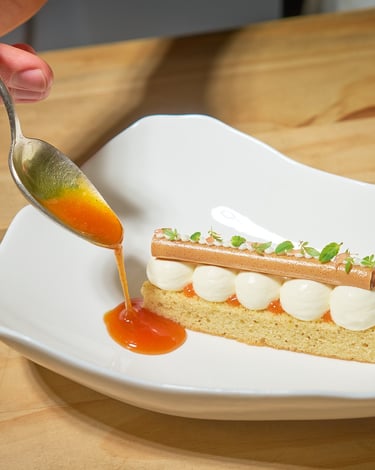Le chef prend possession de votre cuisine avec discrétion, prépare chaque plat avec son propre matériel, puis assure un service raffiné à votre table : dressages élégants, explications des plats et rythme adapté à votre soirée.