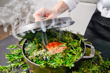 Produits frais, saveurs de saison, plats étoilés et touches locales : votre dîner devient une célébration culinaire qui rassemble amis et famille dans une ambiance chaleureuse et conviviale. Plus de visuels dans la galerie du Chef.