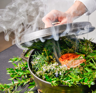 Sans course de dernière minute, sans stress de la cuisine, sans organisation à gérer, vous profitez pleinement de vos invités et du moment. Le Chef s’occupe de tout de l'entrée au nettoyage final : de l'achat des produits frais, la préparation et le service à l'assiette, des amuse-bouches au dessert, jusqu’à la traditionnelle bougie. Chaque détail est orchestré avec précision pour que votre soirée festive devienne un souvenir intense et inoubliable.